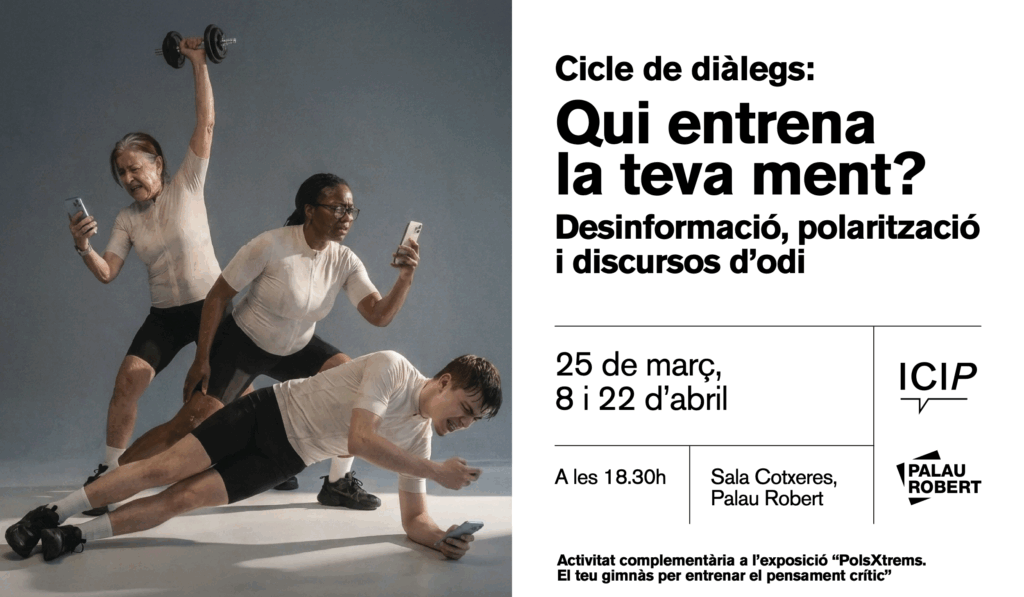 Coincidint amb la inauguració de l’exposició “PolsXtrems. El teu gimnàs per entrenar el pensament crític”, a Palau Robert, l’ICIP organitza un cicle de diàlegs sobre algunes de les temàtiques que tracta la mostra: com fer front a la propagació de la desinformació, la polarització i els discursos d’odi.