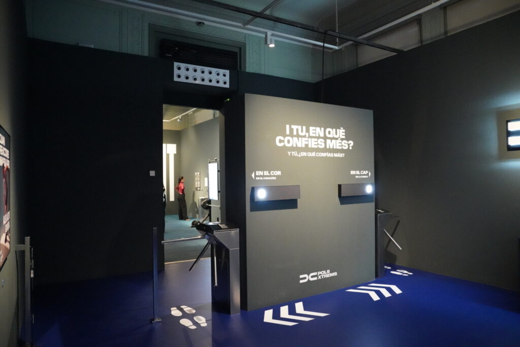 PolsXtrems is an interactive, multimedia exhibition that recreates a gym where visitors can train critical thinking, empathy, and curiosity about other people’s opinions. In a context marked by growing disinformation, polarization and hate speech, the exhibition space mirrors a gym training room, offering different “workouts” to build mental flexibility and critical spirit. It concludes with a recreated locker room that invites visitors to listen to diverse perspectives on current social debates such as immigration, tourism and language.